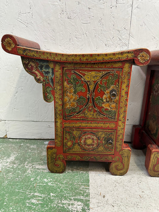 Tibetan Antique Lacquered Cabinet Chair set #0846