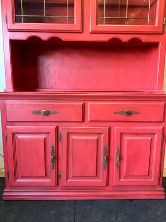 Solid Oak With Glass Door Hutch Rustic Painted/Stained Console #0183