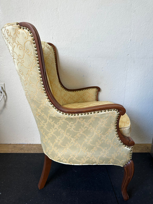 Late 19th Century Antique Carved Wood Stuffed Wing Back Chair #0530