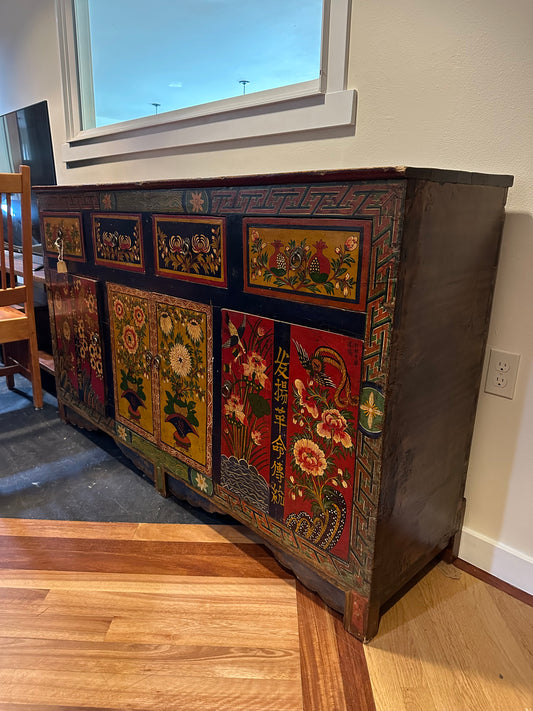 Tibetan 19th or Early 20th century Polychrome Handpainted Credenza