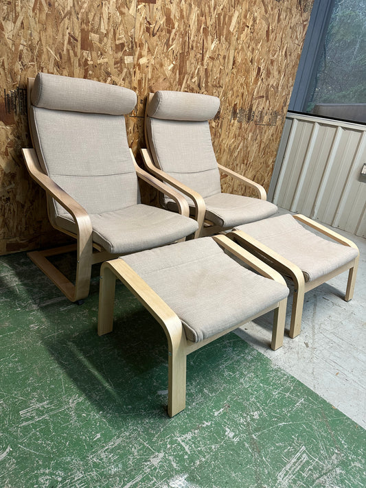 IKEA Poang Birch Armchair sets With Ottomans #0817