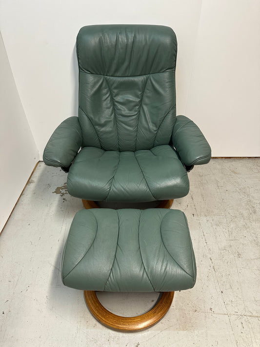 Ekornes Stressless Green Leather Recliner Chair & Ottoman #0812