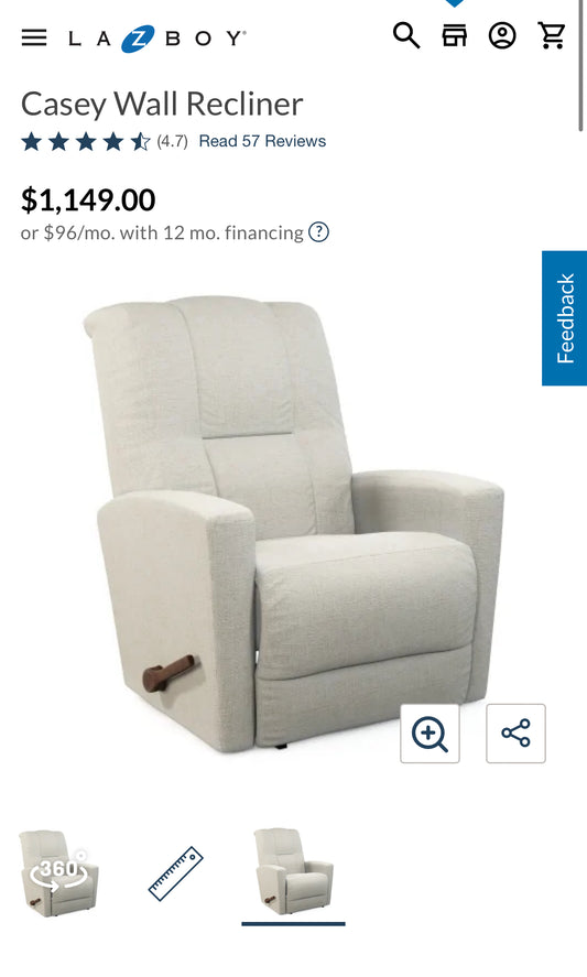 LAZBOY Casey White Wall Recliner Rocker Chair #0761