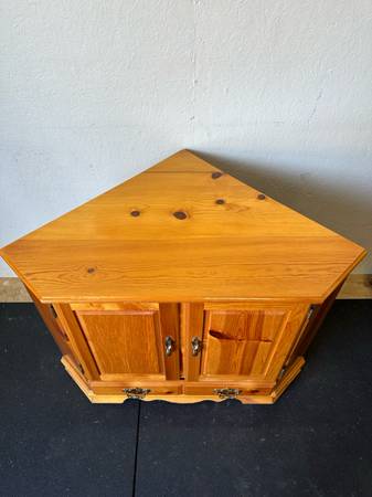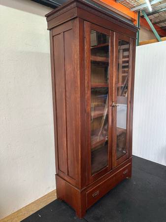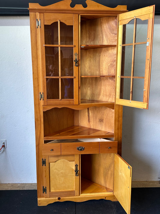 Vintage Oak Corner Hutch Glass Front Display Cabinet #0407