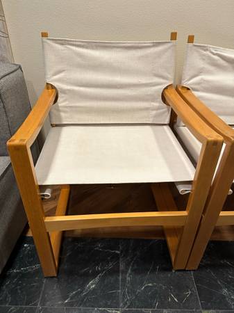 Vintage Mid Century Wooden Canvas Sling Safari Lounge Chairs Set Of 4