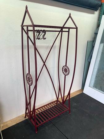 Vintage Ornate Iron Hall Tree Entry Coat and Umbrella Rack with Iron Sliding Hooks #0222