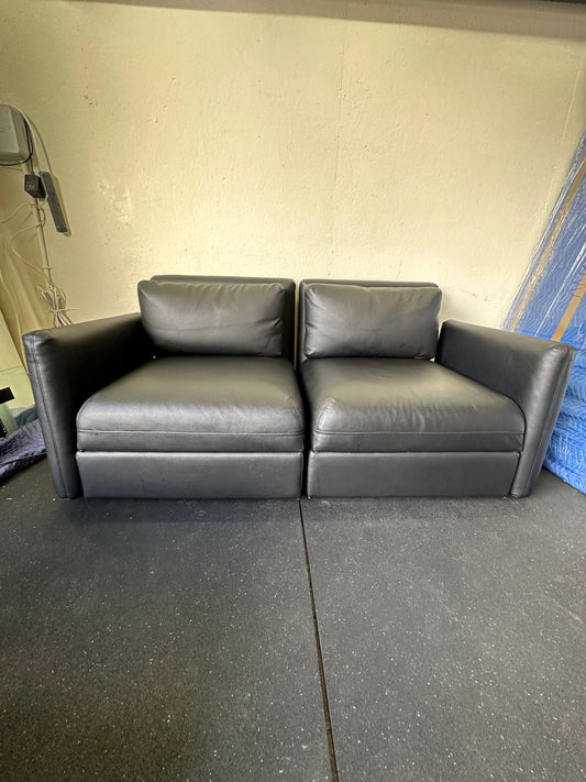 Ikea Vallentuna Black Leather Modular Sofa With Storage and Ottoman #0430