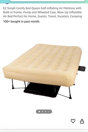EZ Bed Queen Self-Inflating Air Mattress with Built-in Frame Pump & Wheeled Case #0602