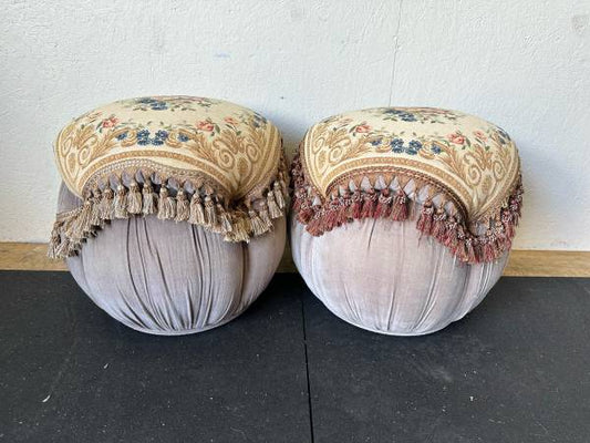 Tapestry Style Fabric Pouf Foot Stools with Fringe #0510