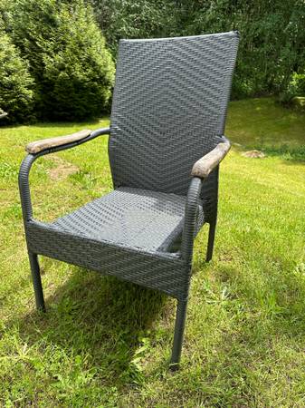Wicker Outdoor Chair with Wooden Arm Accents Grey #0409