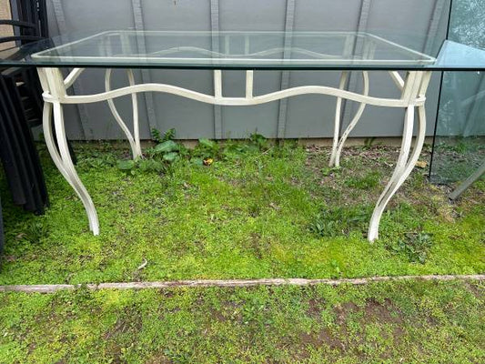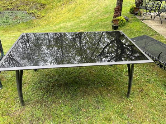 Vintage 6 Person Glass Top Iron Base Outdoor Table Garden Furniture