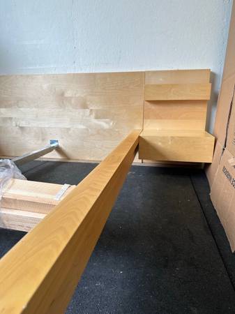 Modern Wood Queen Size Platform Bed Frame With Floating Shelf Side Tables #0198