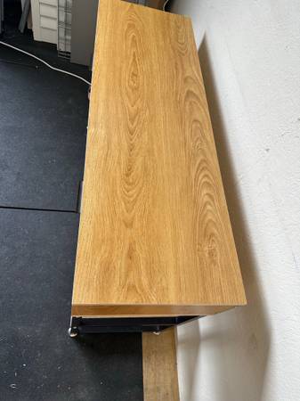 Industrial Style Oak Veneer Metal Frame Double Drawer Console Entry Table KH#7