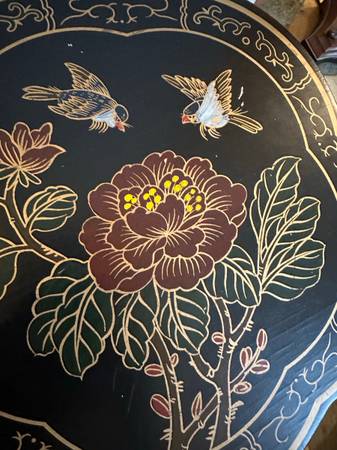 Vintage Chinoiserie Hand Painted Lacquer Stool Plant Stand Ottoman Accent Side Table
