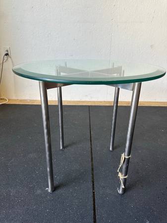 Modern Glass Top Side Table Accent Table 24” Round Metal Base #0355