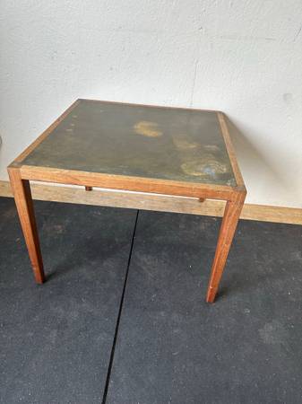 1970s Mid Century Modern Harry Lunstead Designs Acid Etched Top Hardwood Frame Side Table #0246