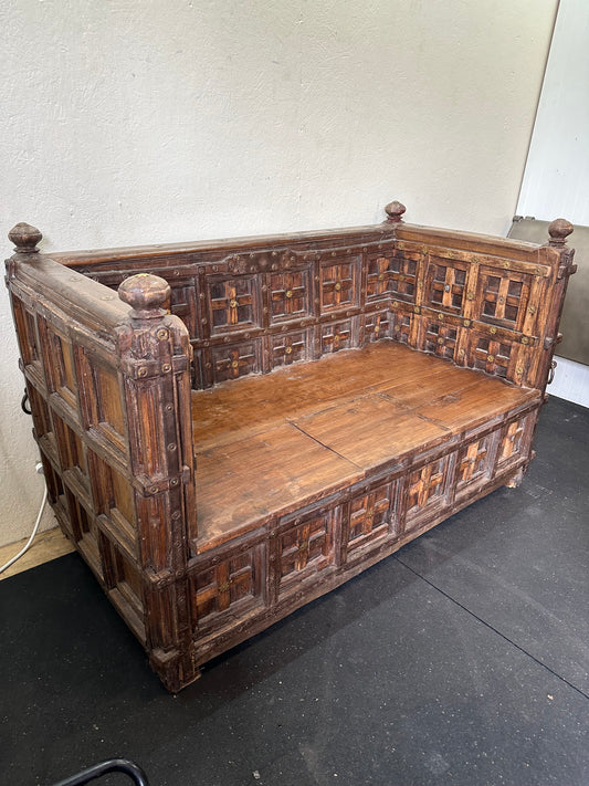 Vintage Carved Loveseat Damchiya Dowry Chest Bench/ Pitara/ Shamli #0722