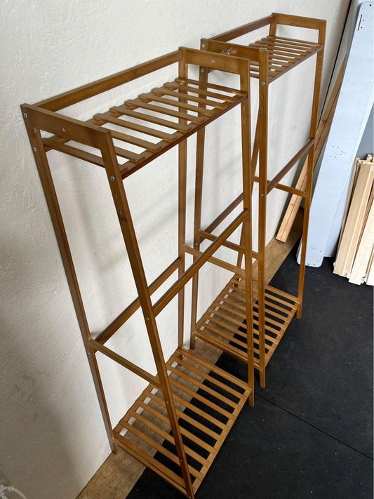 Clothing Rack 2 Tier Closet Organization Wardrobe Shoe Shelf Light Wood #0631