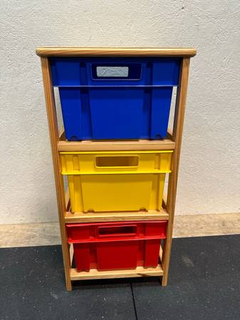 Wooden Toy Storage Rack with Plastic Bins #0416