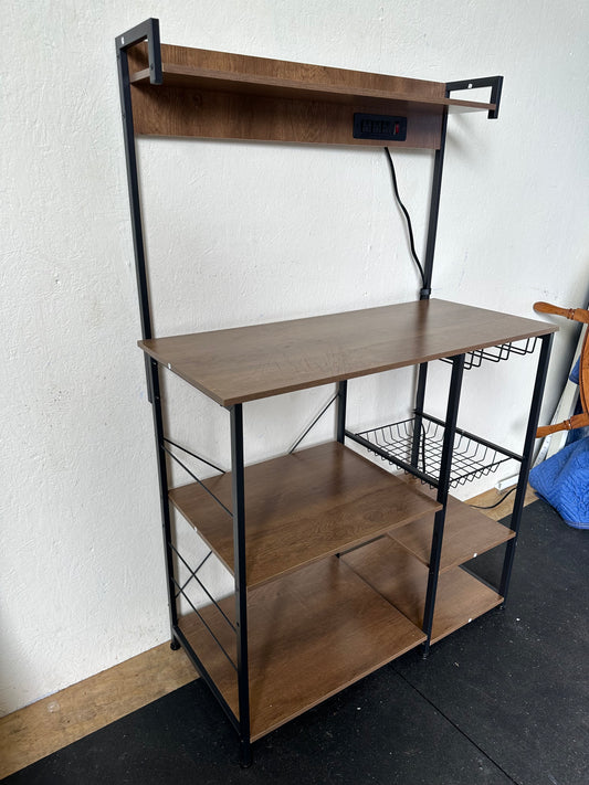 4-tier Dark Brown Kitchen Rack Storage Shelving Unit Kitchen Shelf Baker's Rack with Basket #0468