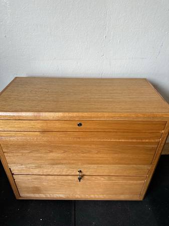 Solid Oak Locking 2 Drawer Lateral Filing Cabinet #0268