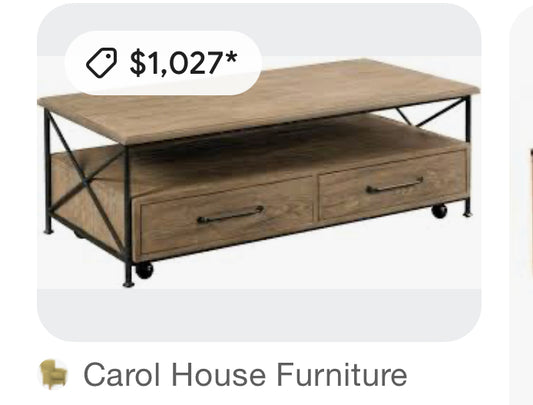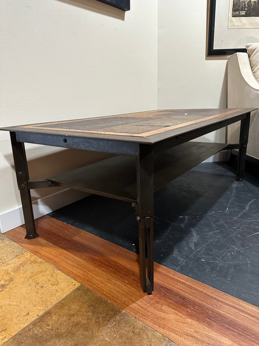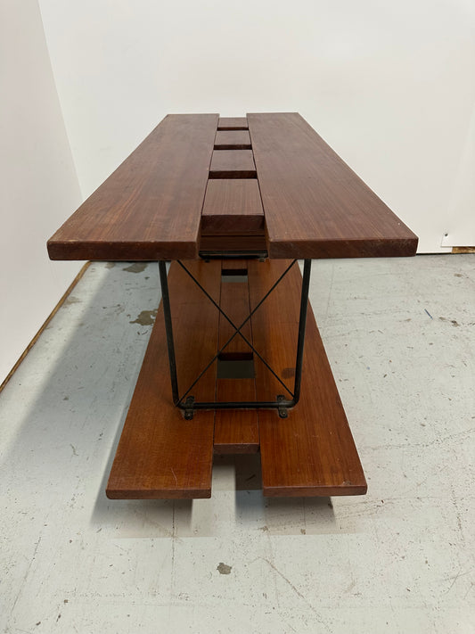 Vintage Rolling Solid Wood Iron Rolling Coffee table #0816