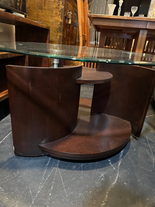 Modern Wood Glass Top Rolling Coffee table #0750