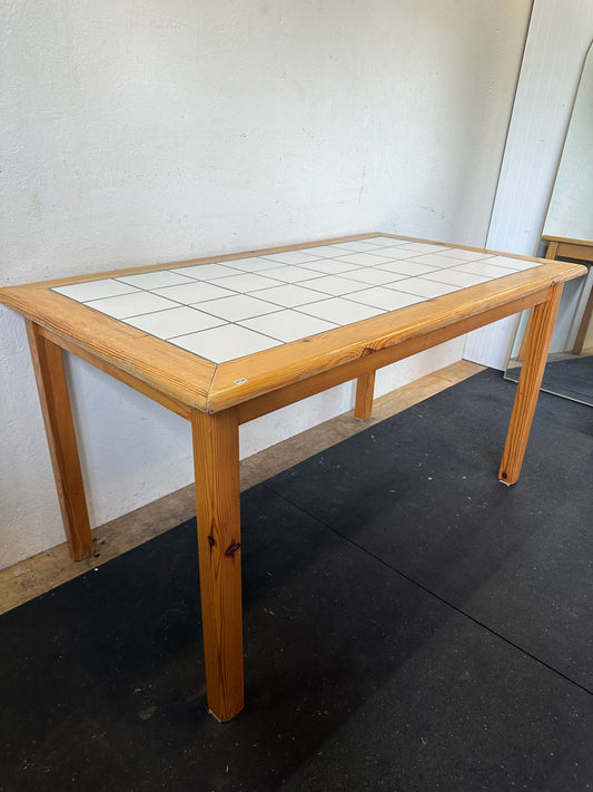 Mid century modern wood table with white tile inlay #0126